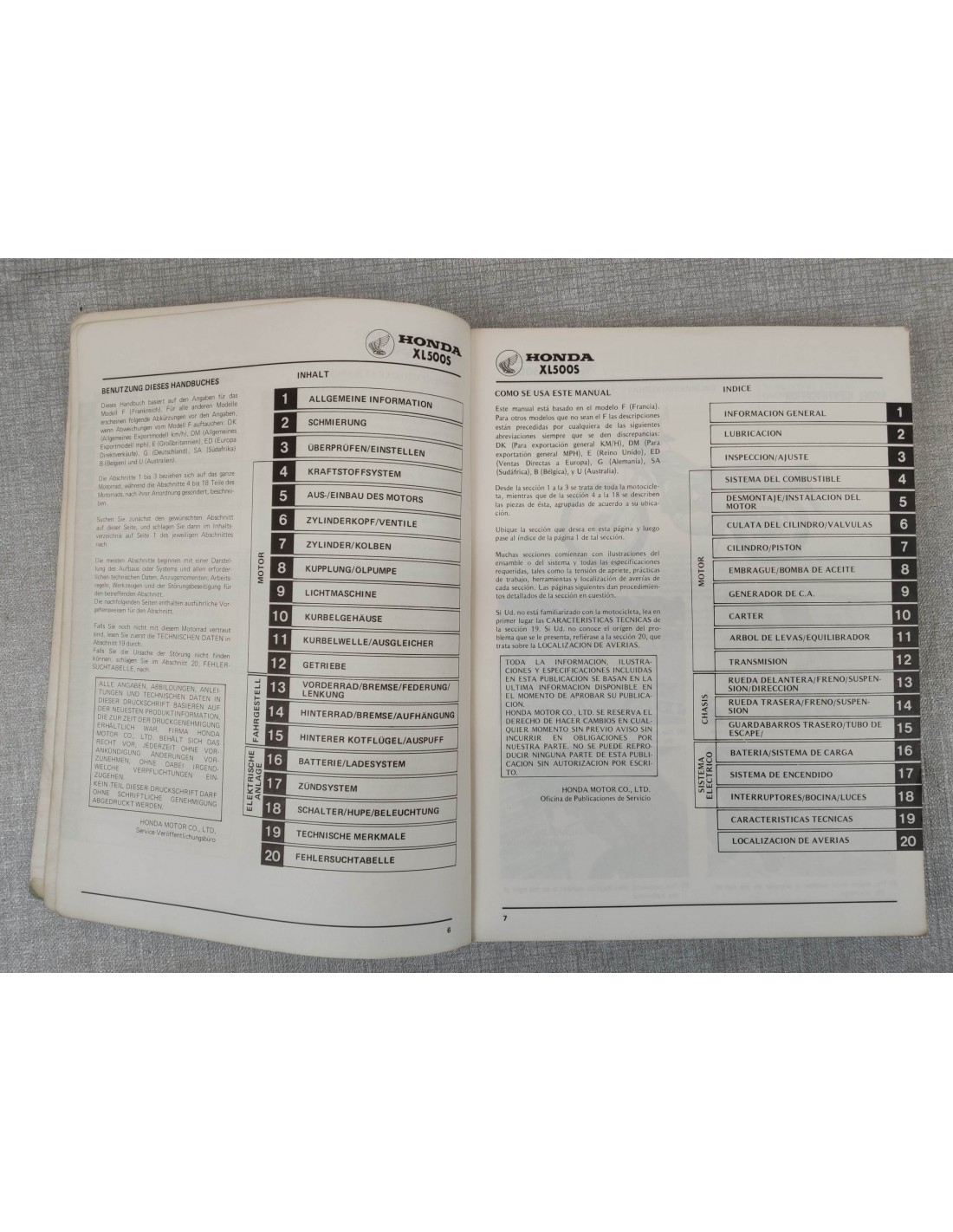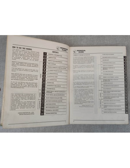 Manuel d'atelier origine HONDA XL500S XLS500 66435000 66-435-00 En très bon état. Manuel en Français, Anglais, Allemand, et espagnol.