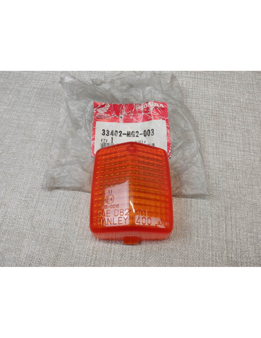cabochon de clignotant AV droit de XL250R, XL350R, XL600R/L, XL600LM/RM, NX250 88/93, NX650 88/91, XRV650 88/89, XRV750 90/03, XLR125 98, MTX125 85/87, MTX200 85, TL125 88, CB125TD 88, CB250R 94, CB500 94/96, NPS50 Zoomer 04/12, remplace la ref 33402MG2000