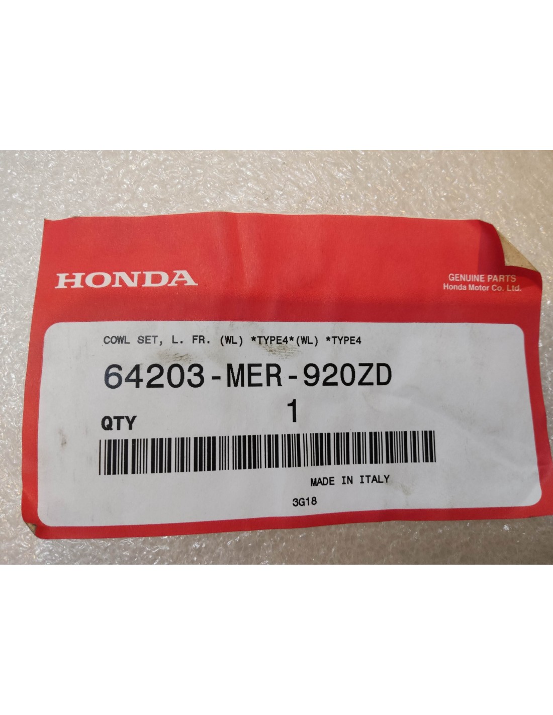 Flanc de carénage avant gauche noir CB600 SA/S 2008/09 HONDA 64203-MER-920ZD - PIECE NEUVE ORIGINE HONDA
