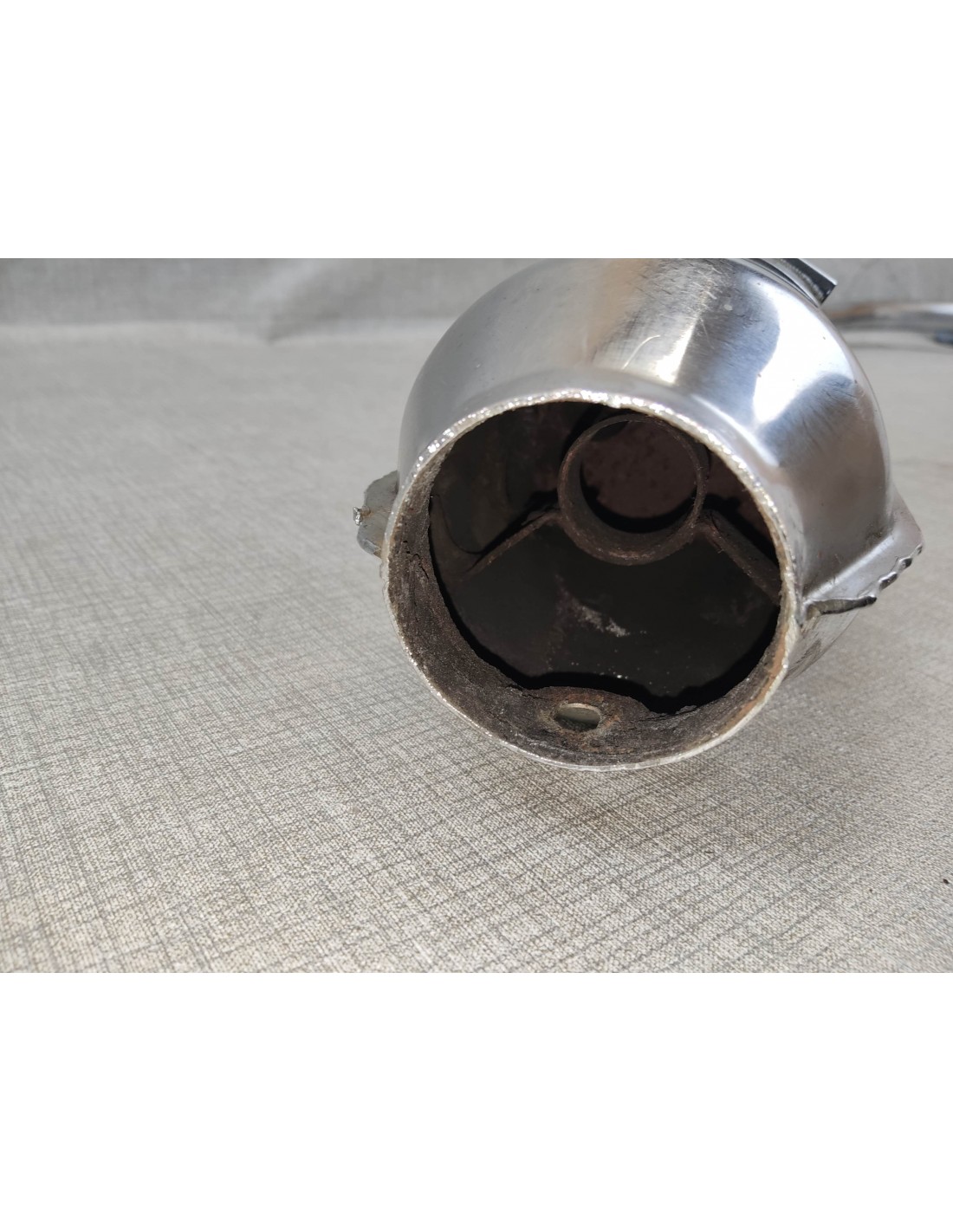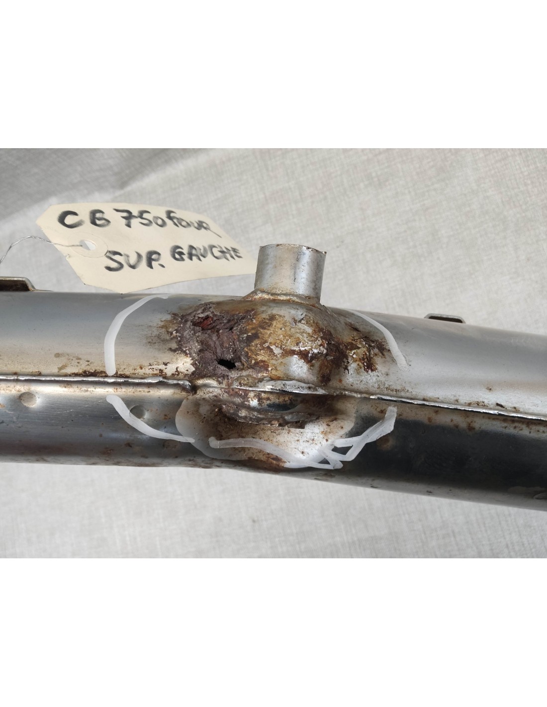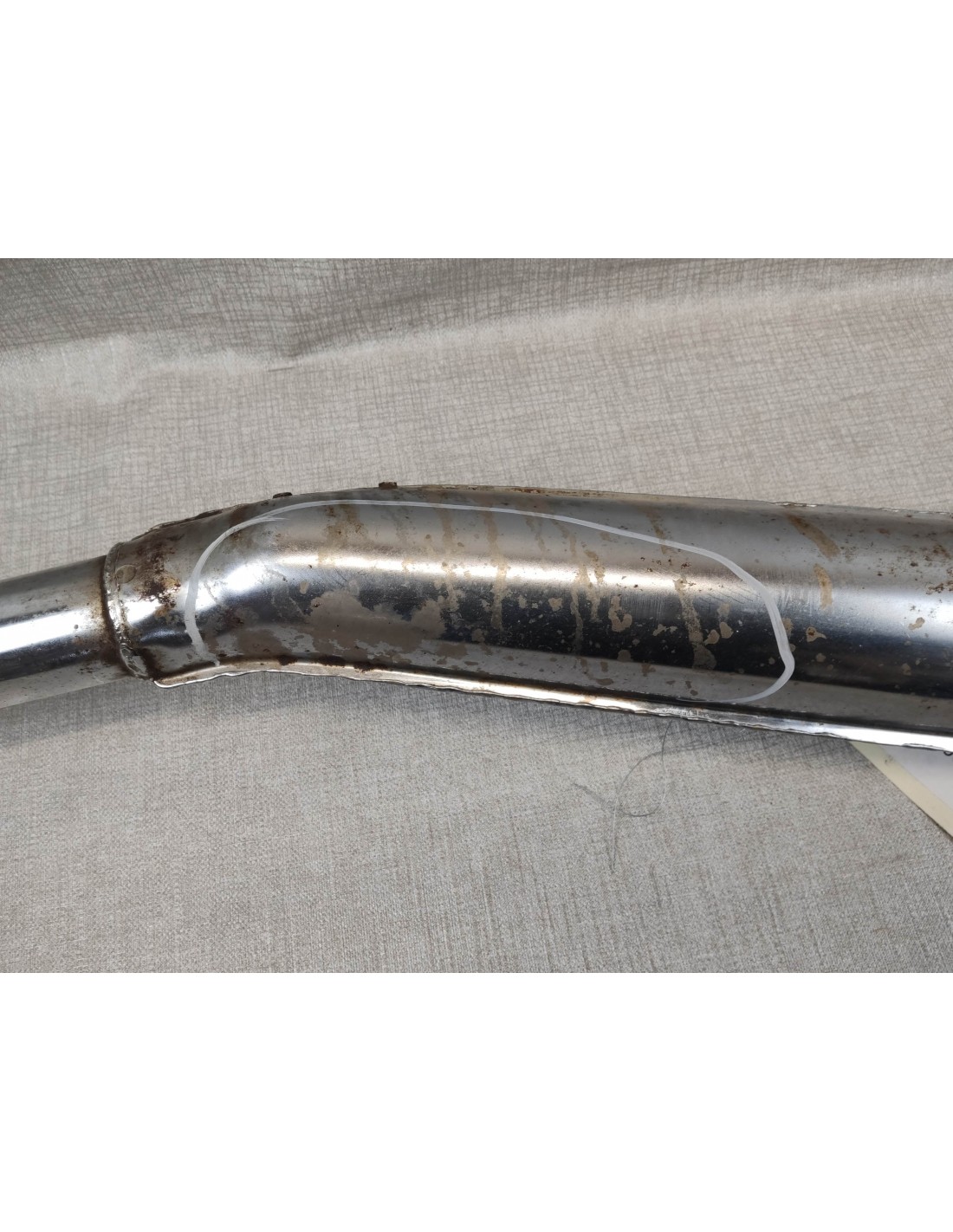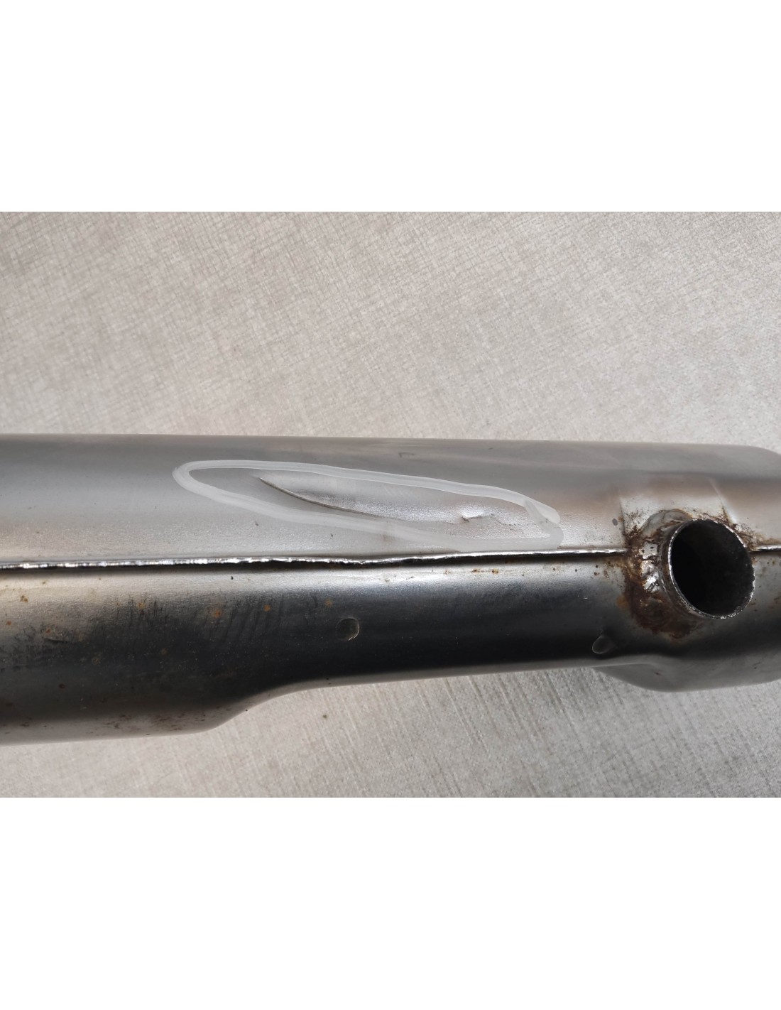 Corrosion perforante au niveau de la fixation arrière (à réparer) / chrome souillé / pas de chicane
