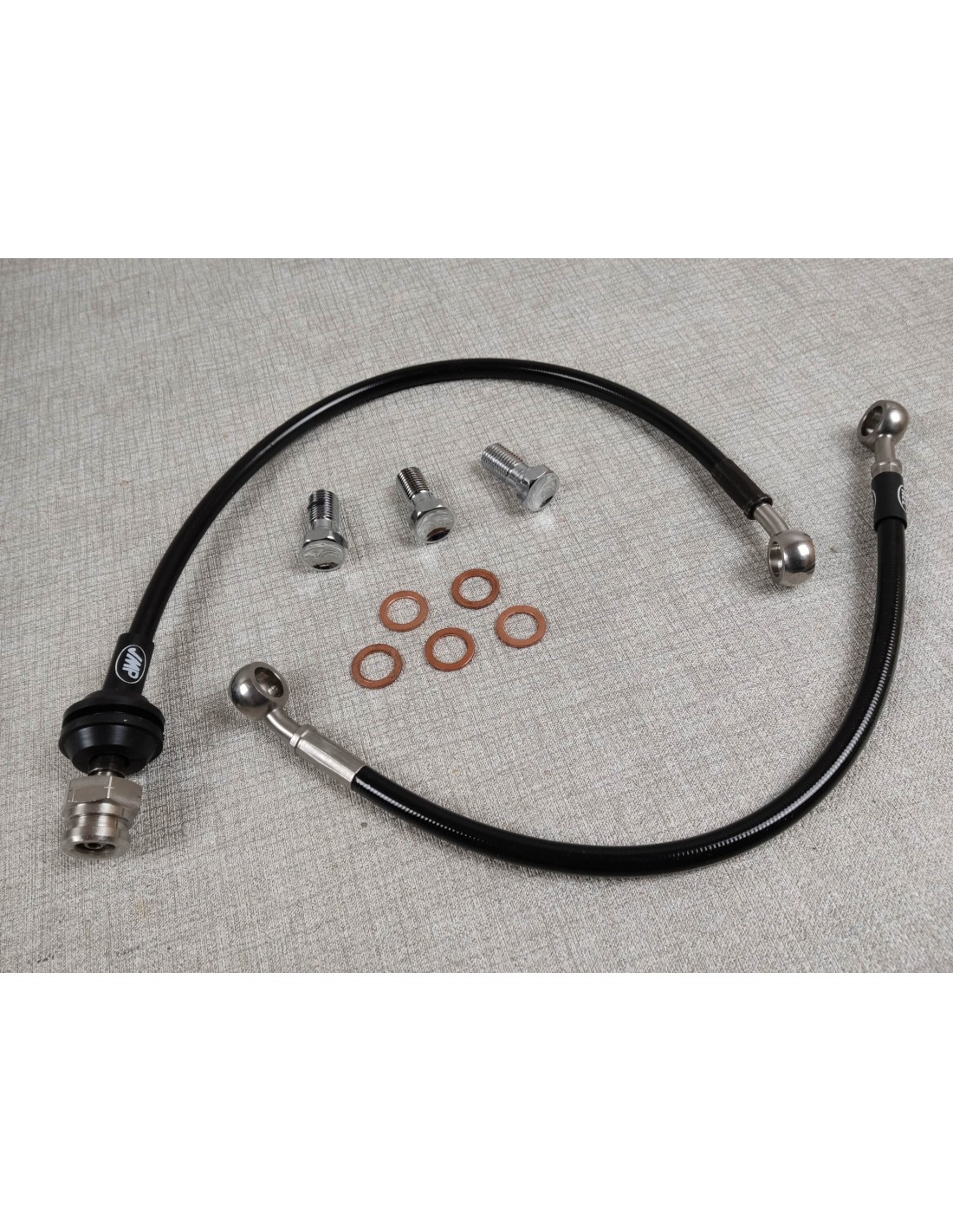 Kit durite aviation guidon bas noir Kit de durites aviation pour guidon bas Durite supérieur de 285 mm Améliore nettement le freiange tout en gardant un look proche de l'origine.