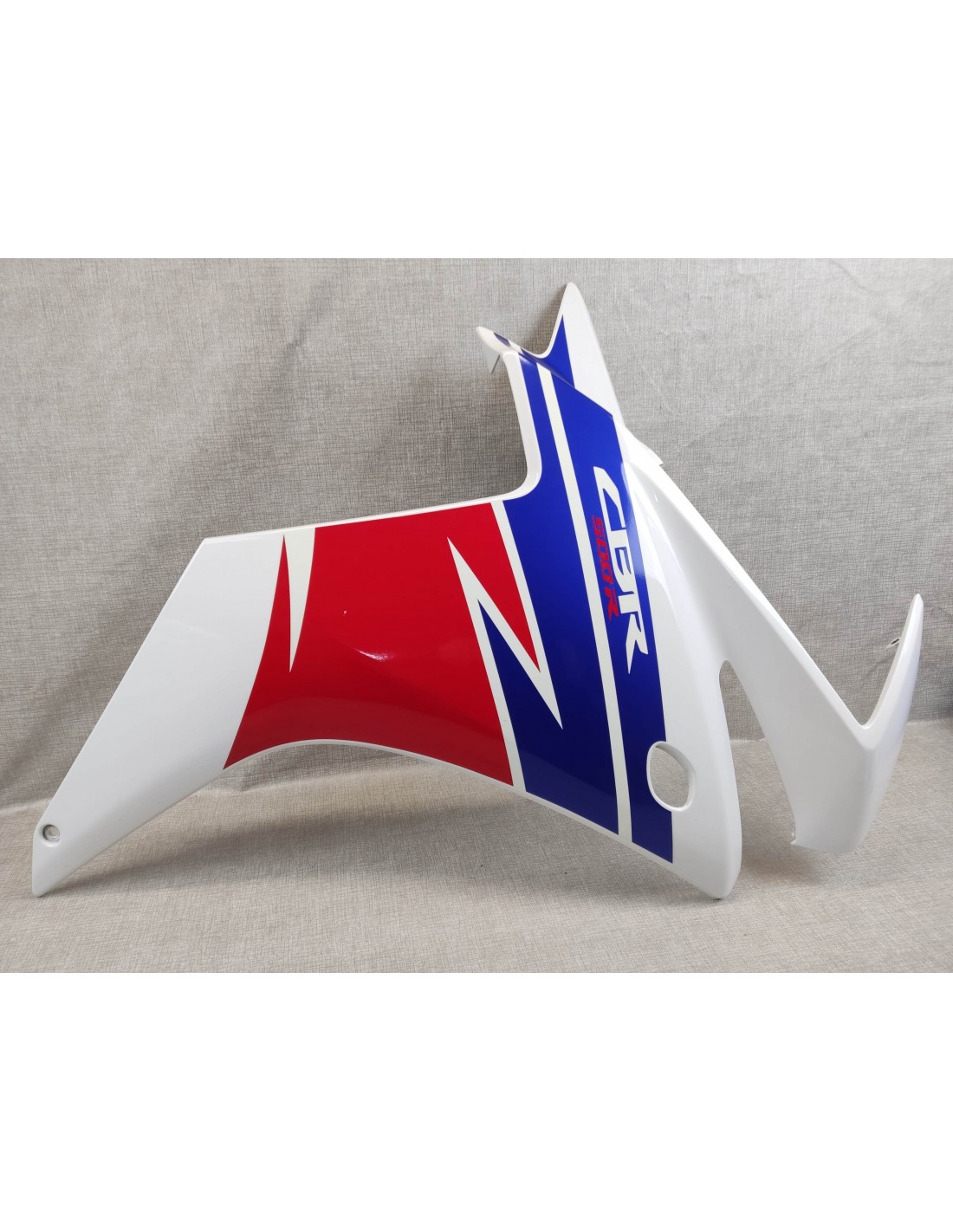 carénage droit OCCASION très bon état CBR500 HRC 2014/15 HONDA 64300-MJV-D20ZAOC défaut: une toute petite griffe sur la partie rouge.