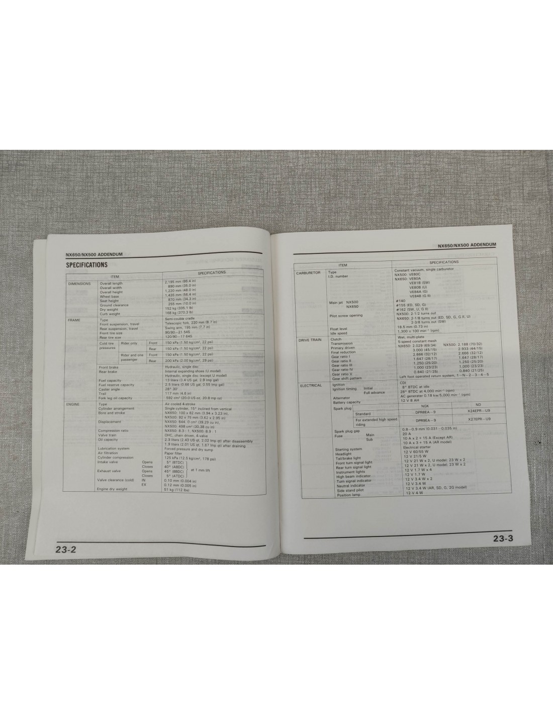 Attention: c'est un ADDITIF au manuel d'atelier NX500 650 DOMINATOR HONDA 67MN900Y 67-MN9-00Y concernant les évolutions du modèle 1989.