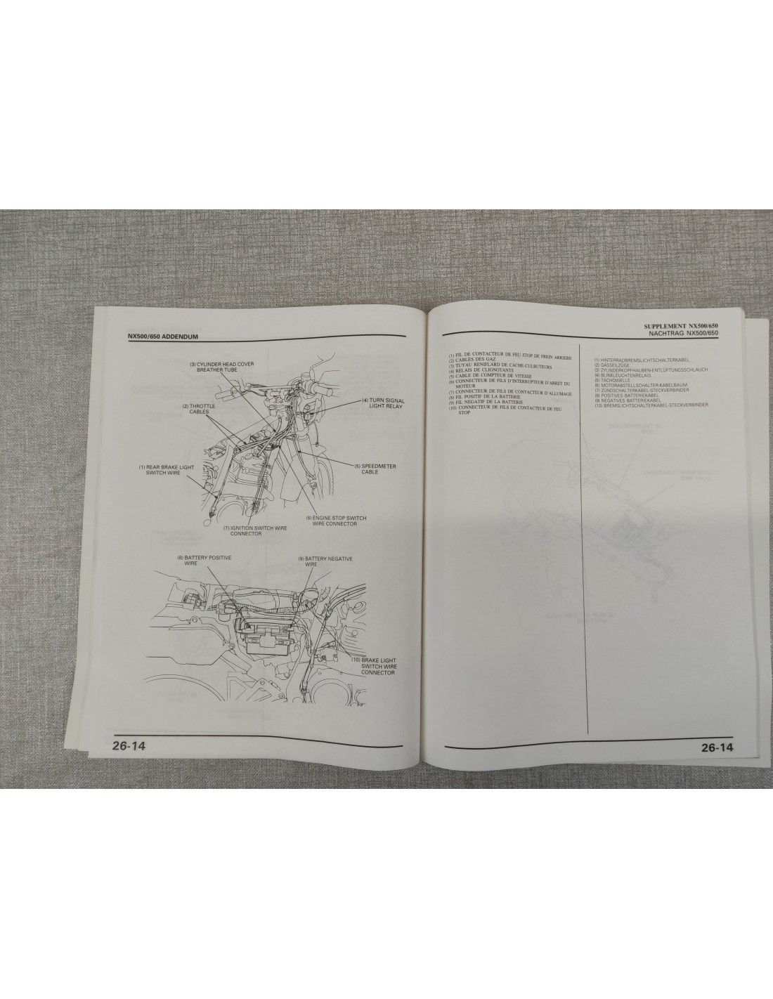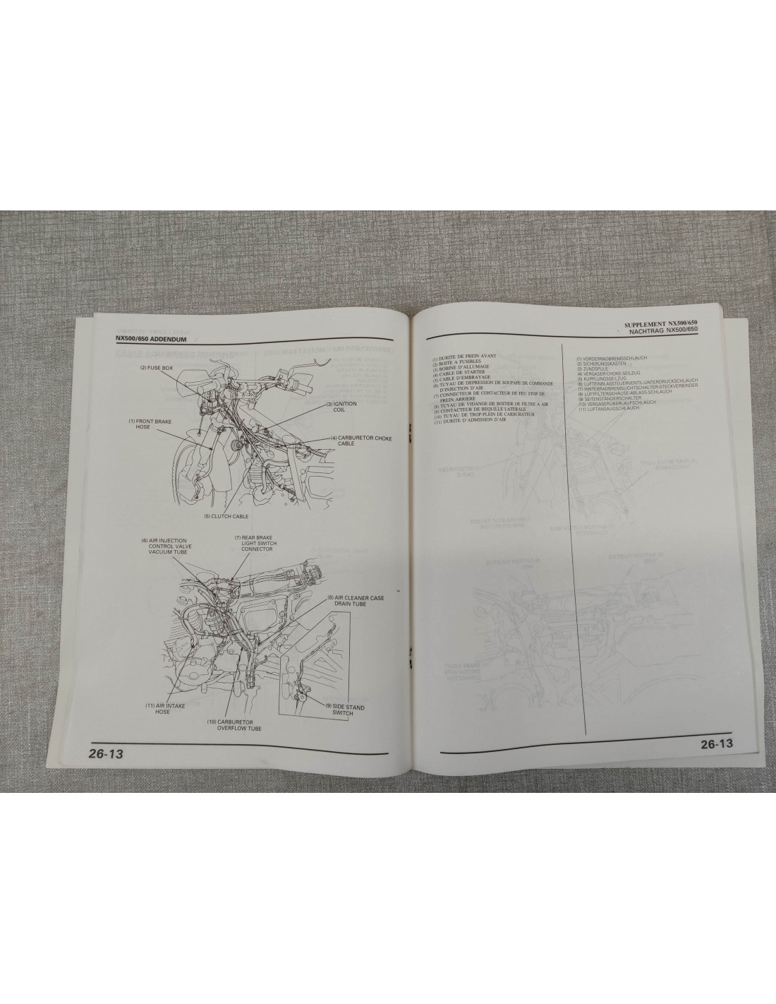 Attention: c'est un ADDITIF au manuel d'atelier NX500 650 DOMINATOR HONDA 67MN900V 67-MN9-00V concernant les évolutions du modèle 1991.