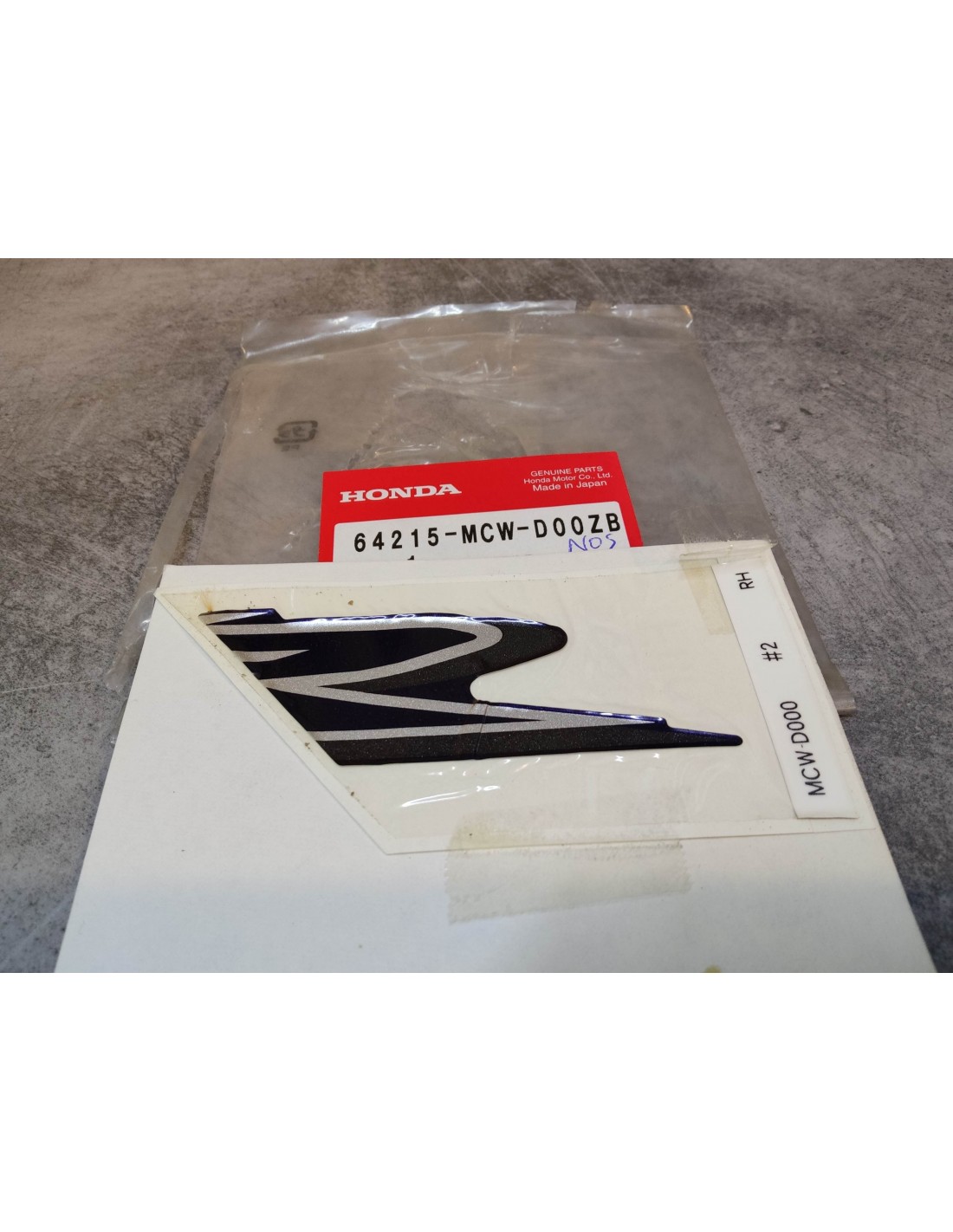 Décor autocollant carenage supérieur droit "NOS" VFR800 /A 02/03 - 64215-MCW-D00ZBNOS - NEW OLD STOCK - PIECE NEUVE LEGEREMENT DECOLLEE (voir photos)