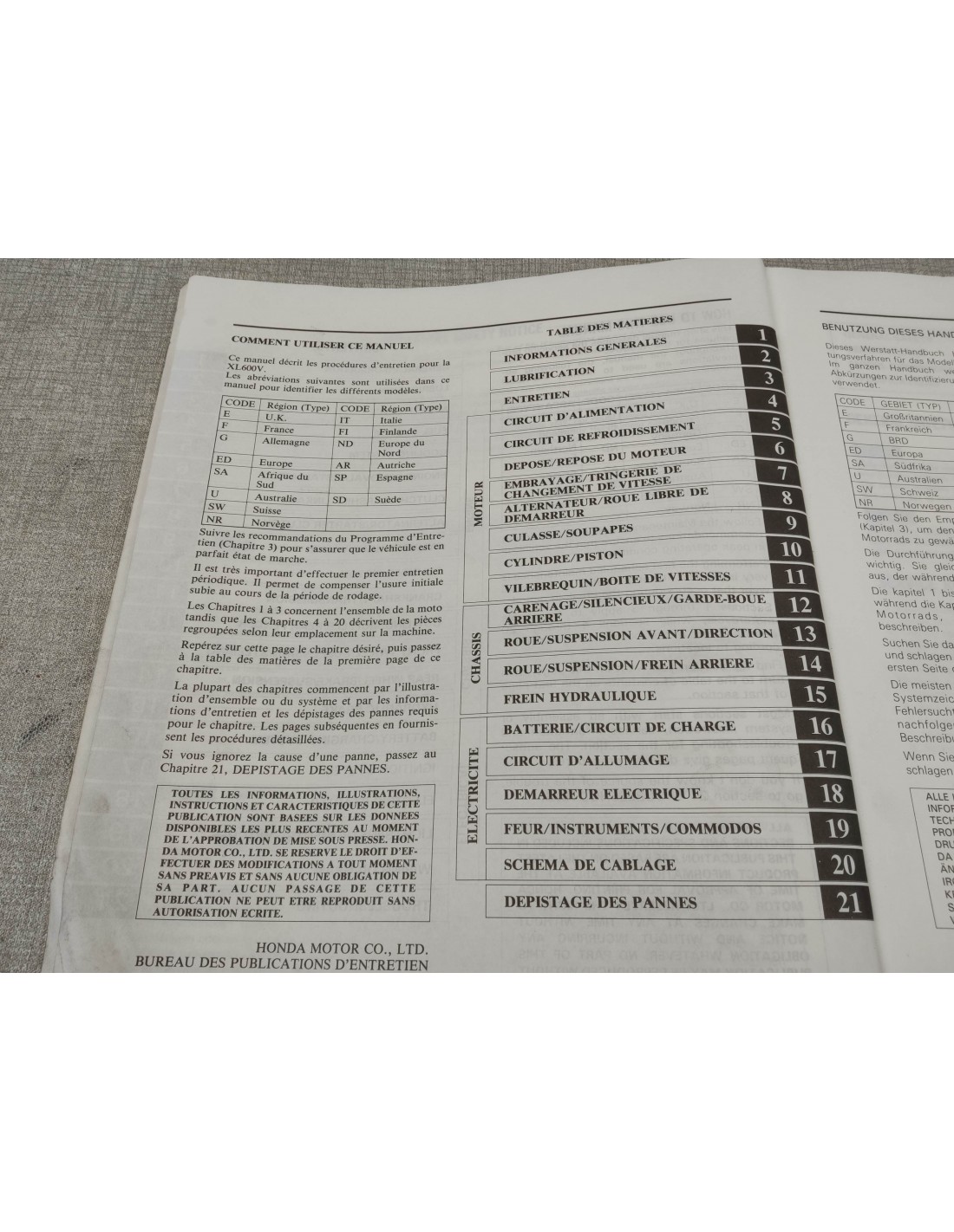 MANUEL D'ATELIER XL600V TRANSALP 87 ORIGINE HONDA 67MM900 67-MM9-00